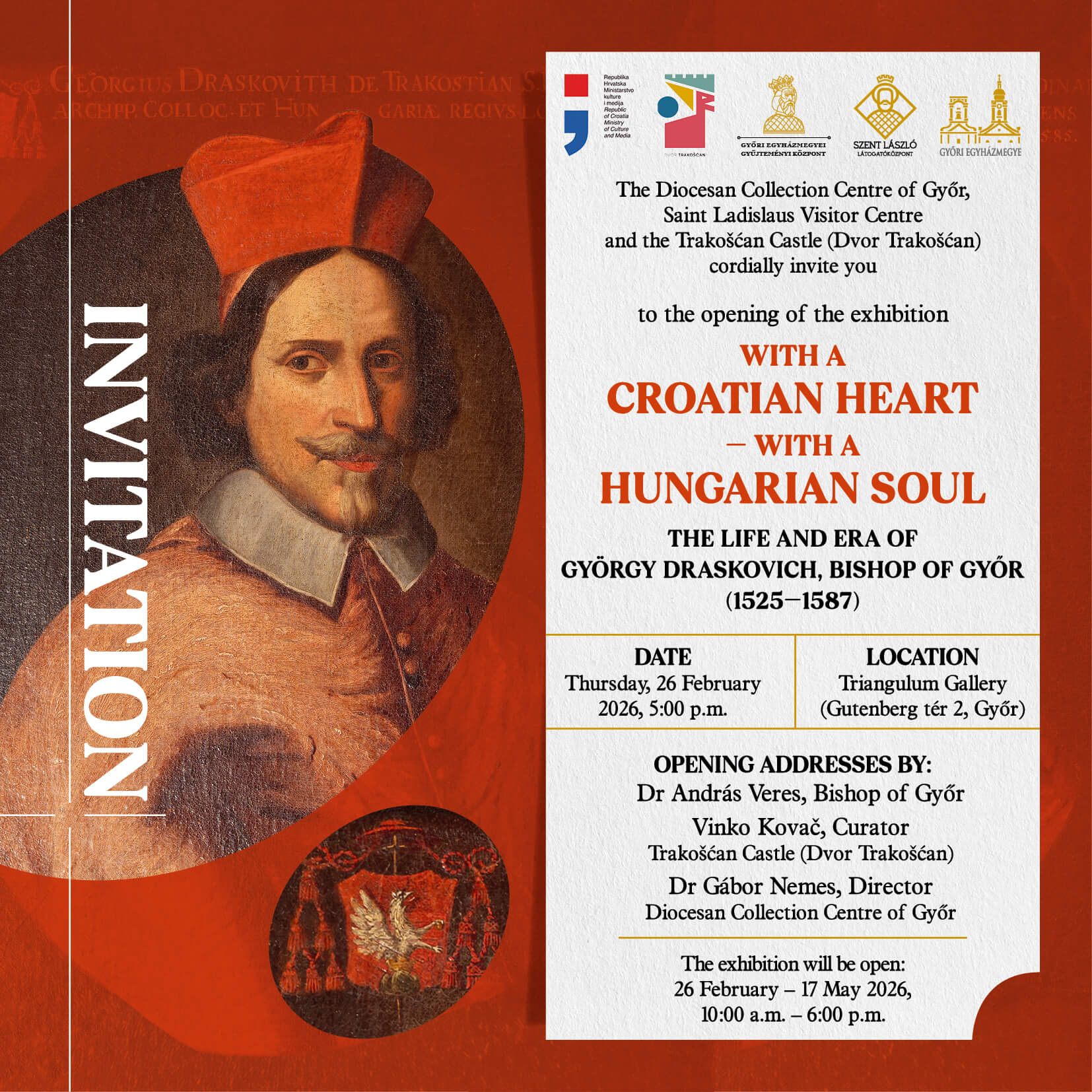 Izložba „With a Croatian Heart – With a Hungarian Soul: The Life and Era of György Draskovich, Bishop of Győr (1525–1587)” predstavlja posjetiteljima život i djelovanje jednog od najistaknutijih crkvenih i svjetovnih predstavnika 16. stoljeća.