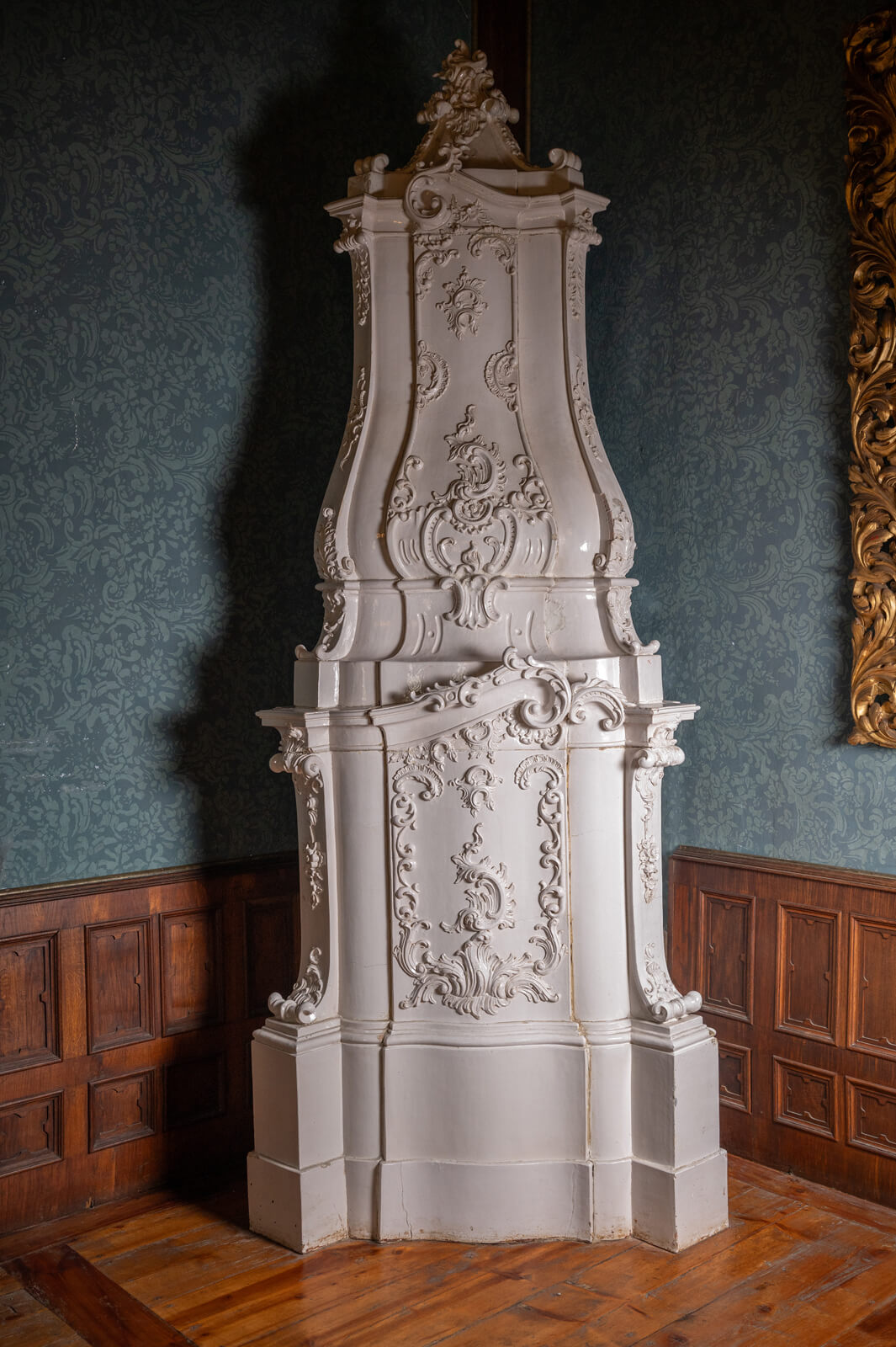 Kaljeve peći predstavljaju jedan od najvažnijih elemenata unutarnjeg uređenja plemićkih dvoraca od 17. do 19. stoljeća, pa tako i u dvorcu Trakošćan. Osim svoje praktične funkcije grijanja prostorija, kaljeve peći bile su odrazu napretka, estetike i luksuza. Izrađivane su od glinenih pločica – kaljeva – koje su se često glazirale i ukrašavale reljefnim motivima, ornamentima, pa čak i obiteljskim grbovima. U plemićkim dvorovima peći su zauzimale središnje mjesto u salonima i spavaonicama, gdje su stvarale ugodnu toplinu, ali i vizualni dojam raskoši. Njihova konstrukcija omogućavala je dugotrajno zadržavanje topline, što ih je činilo učinkovitijima od otvorenih ognjišta. Peći su često izrađivali majstori iz Austrije, Češke ili Njemačke, pa su nosile i elemente srednjoeuropskog umjetničkog stila.