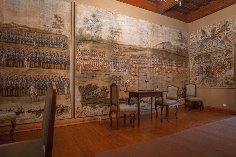 Oslikane platnene tapete u ovoj prostoriji prikazuju regularne austrijske pješačke i konjaničke postrojbe iz razdoblja nakon Rata za austrijsko nasljeđe (1740. – 1748.). Josip Kazimir Drašković bio je zapovjednik jedne od na njima prikazanih postrojbi. Velika zidna slika sastoji se od osam platnenih panoa slikanih temperom koji prikazuju postrojbe na smotri, ukupno 821 osobu. Slike su vrlo vjerne jer u sitnice prikazuju odore vojnika, opremu i zastave te poredak pojedinih jedinica i njihovih dijelova. Posebno je zanimljiv mali orkestar, prvi likovni prikaz vojne glazbe u Hrvatskoj.