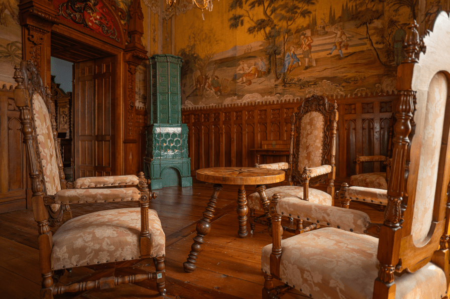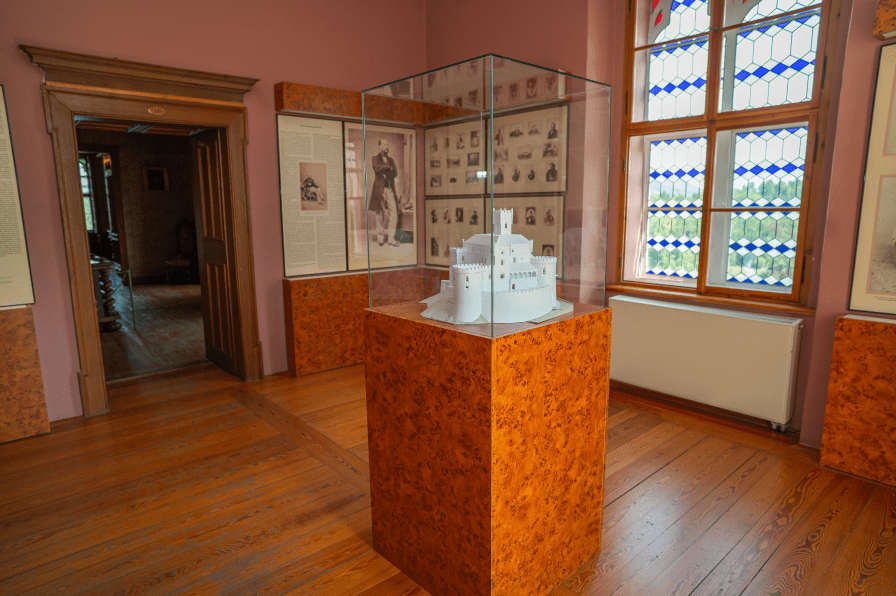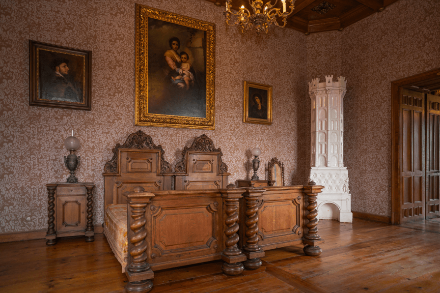 Spavaća soba vlasnika dvorca namještena je u jedinstvenom neobaroknom stilu. U spavaonici se posebno ističe kasetirani strop te bijela kaljeva peć izrađena u obliku kule. Zanimljivo je da je ova peć gotovo potpuno vjerna kopija peći iz burga Füssen na Lechu u Njemačkoj iz 1514. godine.