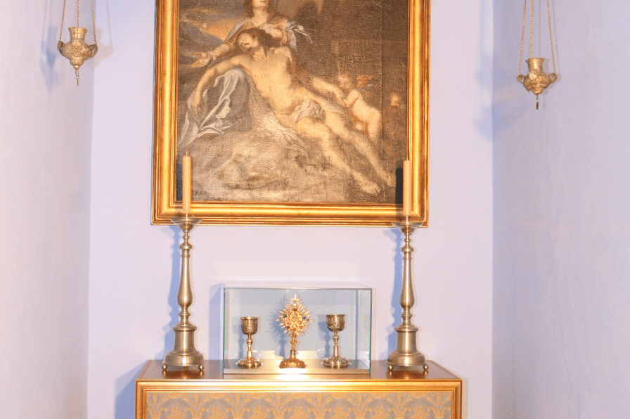 U rekonstruiranoj dvorskoj obiteljskoj kapeli danas se nalazi dio sakralne građe iz ostavštine obitelji Drašković. Na mjestu oltara koji nije sačuvan, prezentirana je pozlaćena pokaznica ukrašena dragim kamenjem te dva kaleža također iz 18. stoljeća. Na zidovima se nalaze slike sakralne tematike od kojih središnje mjesto zauzima Pieta, rad nepoznatog slikara iz 18 stoljeća. Pored slika, ovdje se nalazi barokni sakristijski ormar s bogato rezbarenim ukladama. Posebno mjesto zauzima dobro sačuvana i bogato ilustrirana i uvezena Biblija iz 1747. godine.