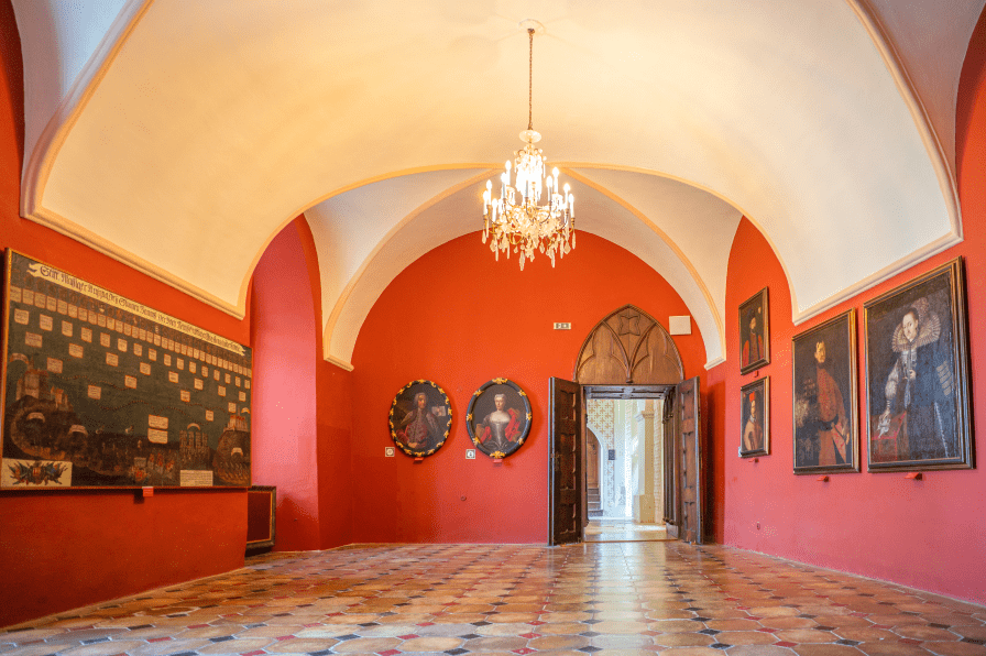 Dvorana s izloženim portretima prvih članova obitelji Drašković. Posebice treba istaknuti portrete Jurja II., Gašpara, Ivana III., Nikole II., te Ivana V. Draškovića. Ovdje se nalazi i Mala genealogija obitelji Drašković iz 1755. godine. Obiteljsko stablo prikazuje samo dio obitelji, odnosno samo direktne pretke generala Josipa Kazimira Draškovića, a donosi nam i zanimljive podatke o izgledu Trakošćana sredinom 18. stoljeća.
